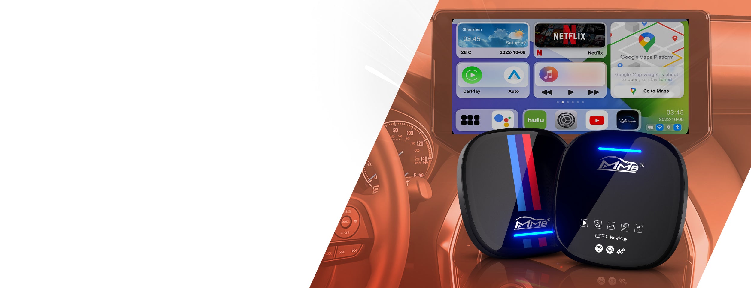 Wirelessly access YouTube, Netflix, and more on your car's display with MMB Box.